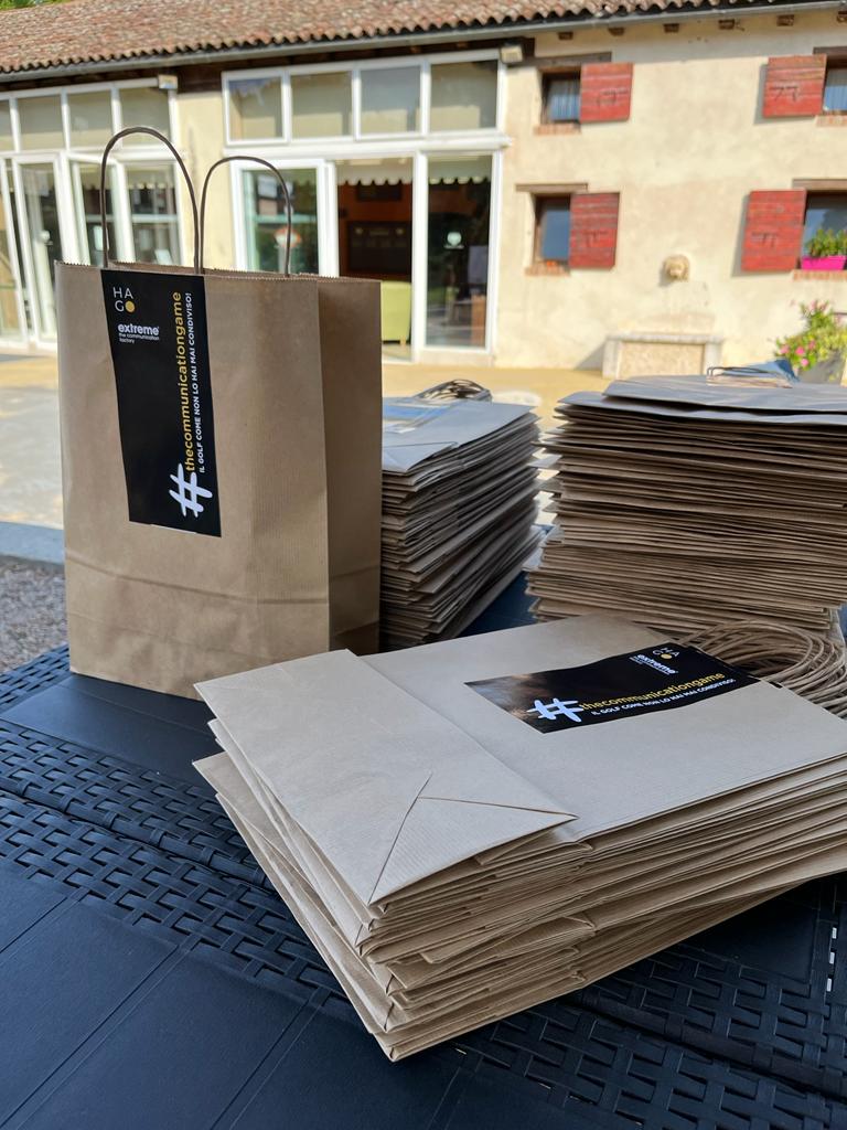 Non basta essere creativi bisogna saperlo comunicare e un team che vede online e offline unito, non manca certo di inventiva. Extreme non pensa solo agli allestimenti in cartotecnica ma prepara dei premi gara originali in plexiglass, colorati e personalizzati, listini e brochure con cui far conoscere il proprio lavoro e ovviamente un omaggio personalizzato per gli ospiti. Social però parla di socialità e per noi non si limita ai cellulari, ma alla realizzazione di uno stand dove bere un bicchiere di prosecco, ricevere un kit di benvenuto con tutto il materiale realizzato e vedere dei contenuti video proiettati in diretta.